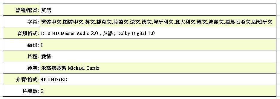 時為第二次世界大戰,一對舊愛侶,曆克與艾莎於戰亂重逢。曆克在卡薩布蘭卡開設夜總會,長長袖善舞。艾莎與其隸屬地下組織的丈夫正在逃避納粹黨的追捕。只有曆克才可以幫助艾莎夫婦逃亡,但曆克卻拒絕協助......直到艾莎重新喚醒他的理想......