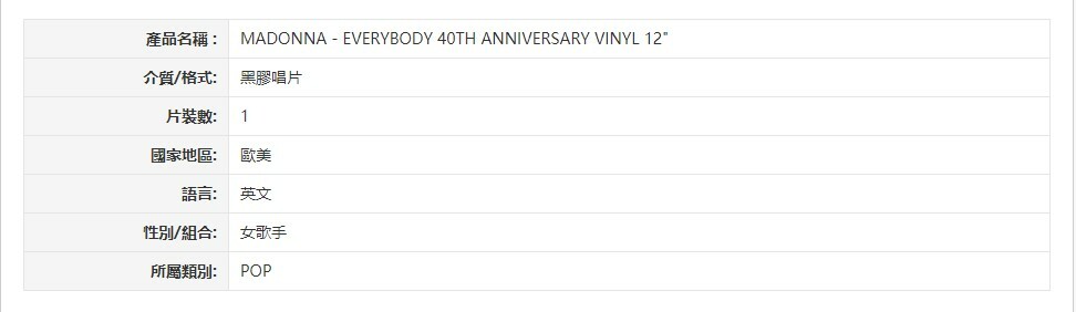 Madonna Everybody 180gm VINYL 12" 45rpm RSD Black