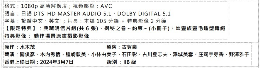 珍藏版藍光影碟附有豪華特典及珍貴影像特典.香港首度發行