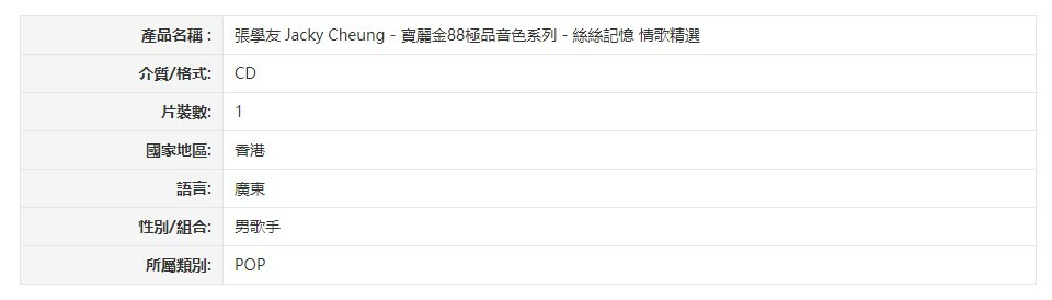 | 張學友 Jacky Cheung - 寶麗金88極品音色系列 - 絲絲記憶 情歌精選 |